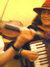 Lynn, amazingly versatile player of a beautiful Italian accordion. Adds some flashy finger-work to the tunes, and holds the centre ground, with great warmth and energy. Got an accordion, got a party, as they say. Lynn is also a fine pianist. Sometimes she is moved to sing a song in one of the languages she likes to collect, from Romany to Yiddish to Cajun French. She can call dances from the celtic lands, as well as village dances from Europe. She likes to write fanciful stories and is finishing an esoteric eco-thriller at present.