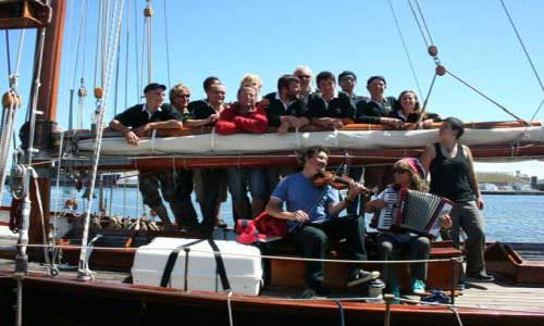 On their travels, they have often been asked to play for family or community celebrations, and the community dance element is always popular. The band’s versatility allows for spontaneous developments to arise – such as an outbreak of tango dancing, followed by a sensitive backing for a fado singer (Portuguese christening party) – or the spontaneous spoons-playing workshop for kids (Poland) – the massed Spanish chorus of Cockles and Mussels accompanied by Asturian pipers (Northern Spain) - or the vodka-fuelled four–am Irish ceilidh dancing in a tiny bar in Northern Poland – or Palestinian folk dances to Scottish reels (honest!)